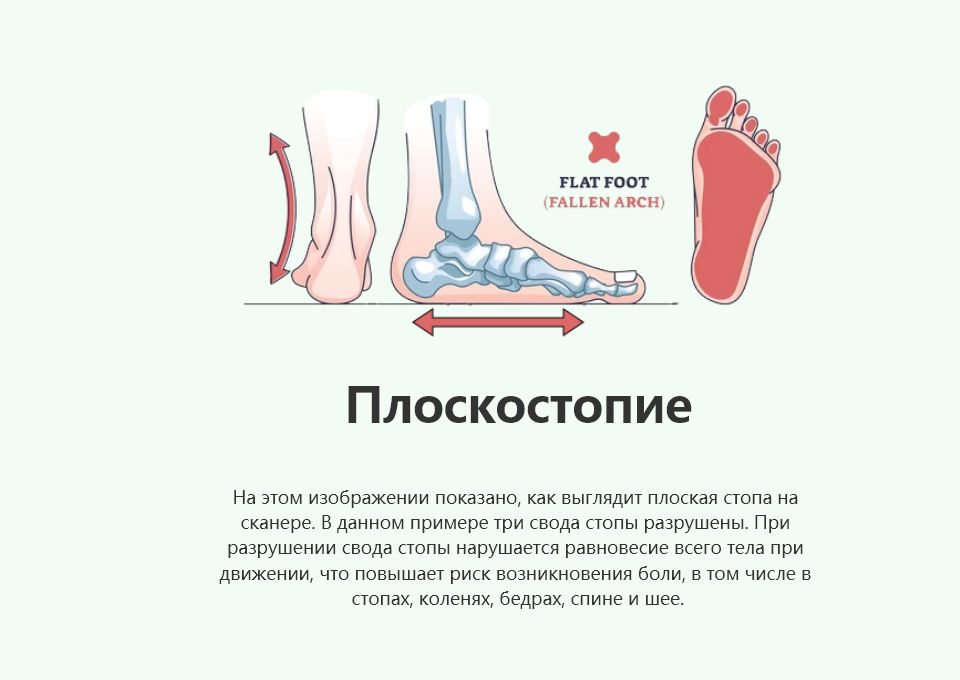 Ваши ноги здоровы? Плоскостопие, склонность стопы или дисбаланс стопы могут вызывать боли в ногах, коленях, тазобедренных суставах, спине и даже плечах. Если вы рассматриваете индивидуально разработанные ортопедические стельки, здравоохранительный специалист может провести сканирование стопы, чтобы показать вам, как дисбаланс стопы может привести к проблемам с коленями, тазобедренными суставами, спиной и плечами. Сканирование стопы покажет, как функциональные ортопедические стельки могут помочь. После сканирования стопы вы получите отчет, в котором будет указан индекс плоскостопия/стабильности, оценка стопы и физическая оценка.